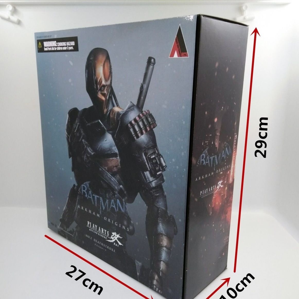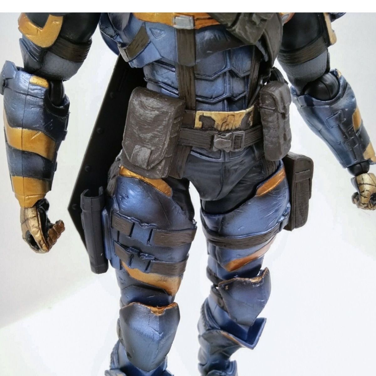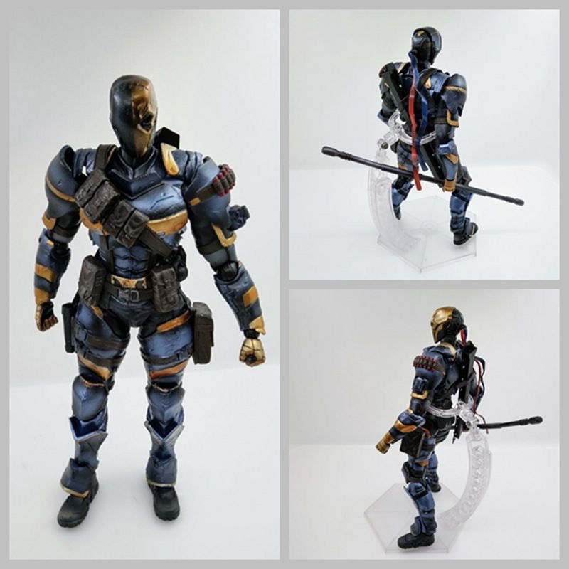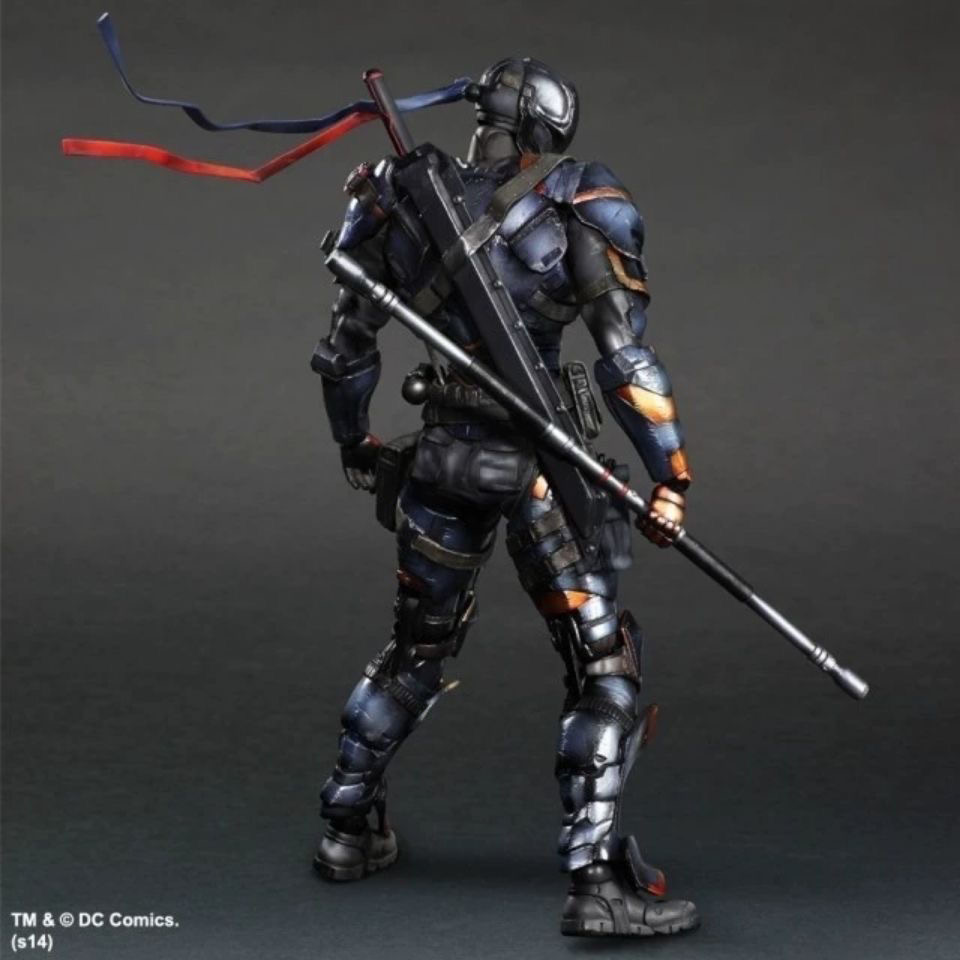 Master the art of combat with this meticulously crafted PLAY ARTS KAI action figure of Deathstroke from Batman: Arkham Origins. Standing approximately 11.2 inches (28.5 cm) tall in 1/7 scale, this highly detailed collectible captures the world's deadliest mercenary in his advanced tactical armor from the critically acclaimed game. The figure showcases the distinctive orange and blue armor plating with battle damage effects, enhanced musculature, and the intimidating eyepatch that makes him instantly recognizable.