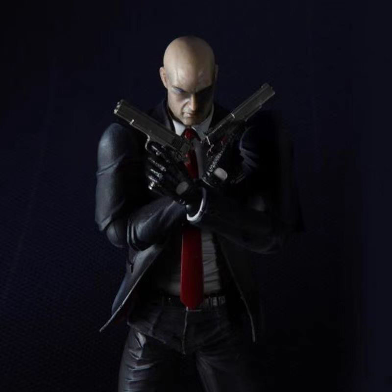 Execute missions with precision using this meticulously crafted PLAY ARTS KAI action figure of Agent 47 from the Hitman series. Standing approximately 10.8 inches (27.5 cm) tall in 1/7 scale, this highly detailed collectible captures the world's ultimate assassin in his signature black suit, red tie, and polished shoes. The figure showcases realistic fabric textures, tailored suit detailing, and the stoic presence that defines the iconic bald-headed contract killer.