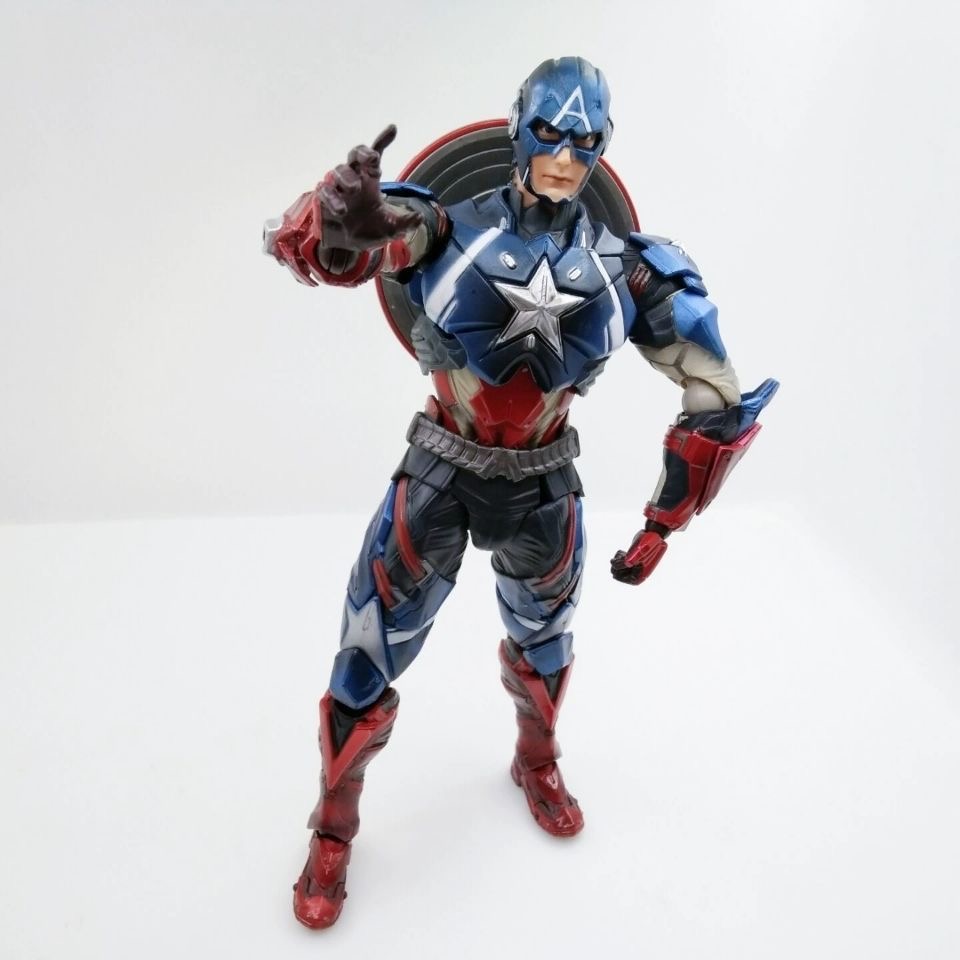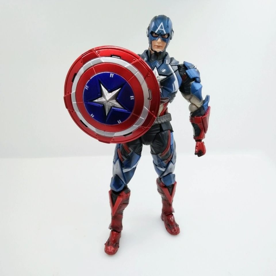 Embody the spirit of freedom with this meticulously crafted PLAY ARTS KAI action figure of Captain America from Marvel's Avengers. Standing approximately 10.8 inches (27.5 cm) tall in 1/7 scale, this highly detailed collectible captures Steve Rogers in his iconic star-spangled uniform, complete with vibranium shield, tactical detailing, and the unwavering determination that defines Earth's mightiest hero. The figure showcases realistic fabric textures, reinforced armor plating, and the patriotic color scheme that has become synonymous with justice and liberty.